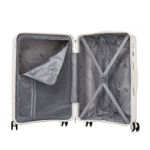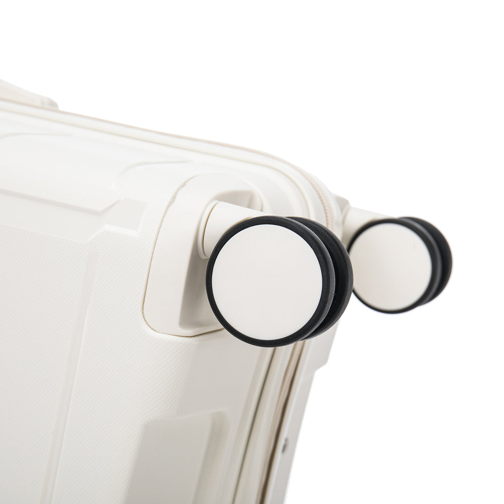 Maletas Extra Livianas y Sólidas de Diseño Contemporáneo y Funcional. Tienen Cuatro Ruedas de diseño Aeronáutico, Multi- Direccionales de 360 Grados y Silenciosas, Para poder mover la maleta sin ningún esfuerzo. Traen Cerraduras Incorporadas de Combinación de tres Dígitos. Asa Metálica Superior Retráctil para Sistema Autoportable, con botón de presión y mango ergonómico en Gel, contiene Agarraderas Laterales en material GEL, que permiten levantarlas cómodamente, además tienen Cuatro Cuñas que permiten apoyarlas lateralmente.