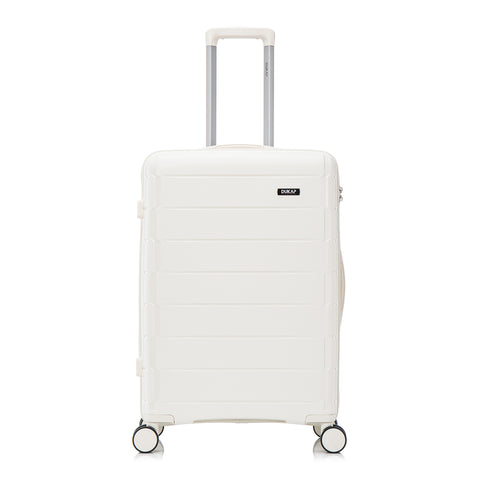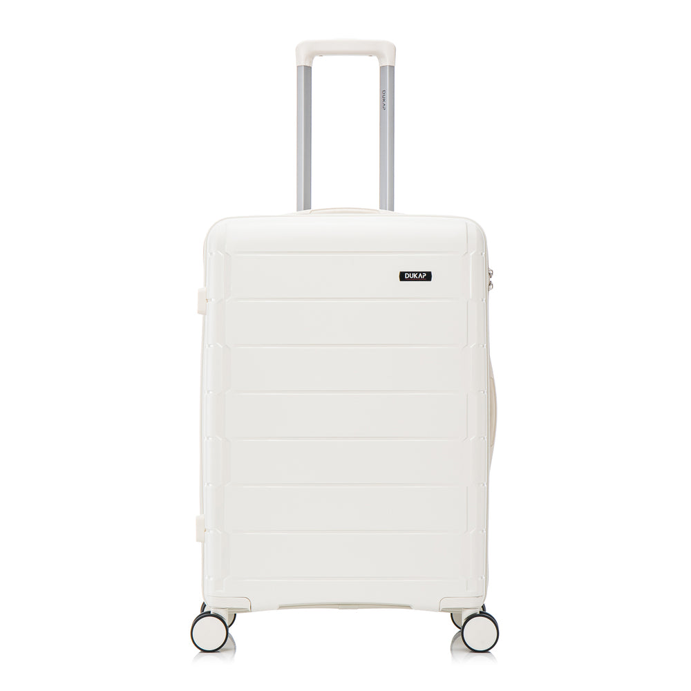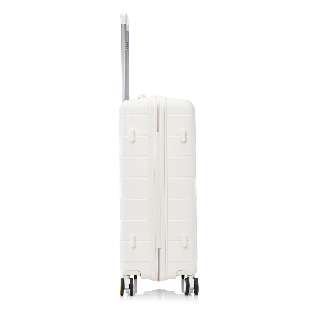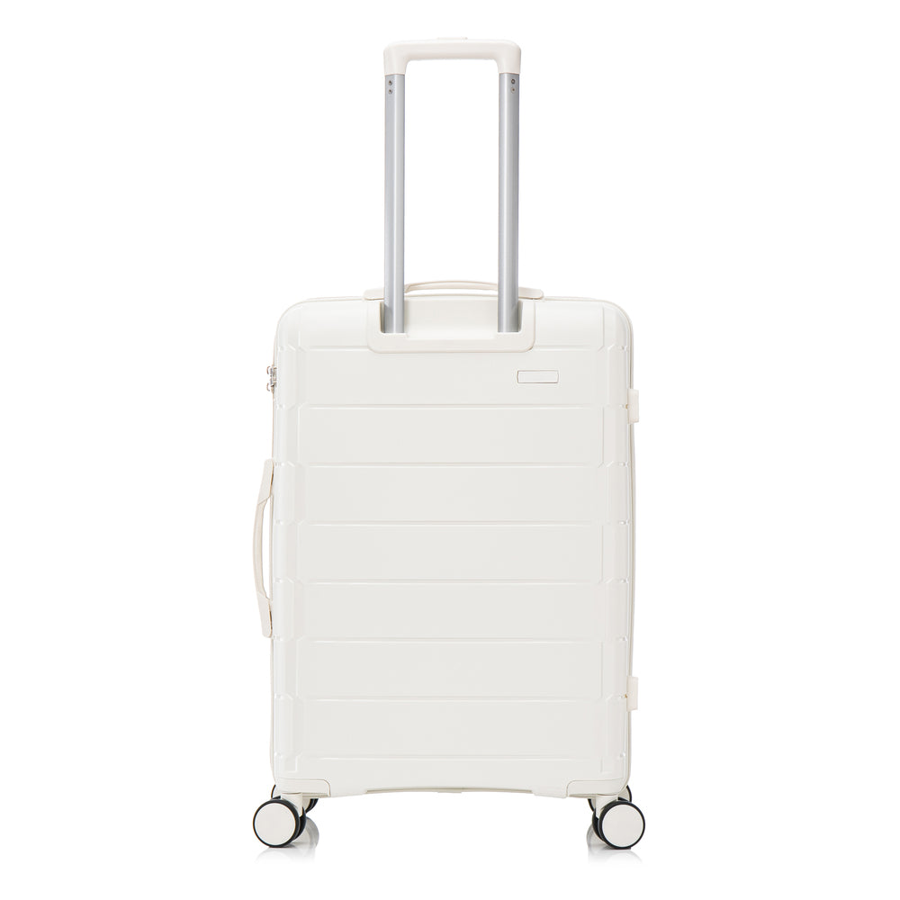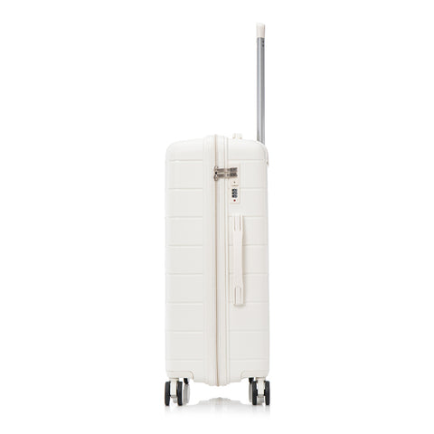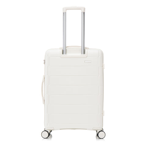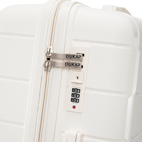 Maletas Extra Livianas y Sólidas de Diseño Contemporáneo y Funcional. Tienen Cuatro Ruedas de diseño Aeronáutico, Multi- Direccionales de 360 Grados y Silenciosas, Para poder mover la maleta sin ningún esfuerzo. Traen Cerraduras Incorporadas de Combinación de tres Dígitos. Asa Metálica Superior Retráctil para Sistema Autoportable, con botón de presión y mango ergonómico en Gel, contiene Agarraderas Laterales en material GEL, que permiten levantarlas cómodamente, además tienen Cuatro Cuñas que permiten apoyarlas lateralmente.