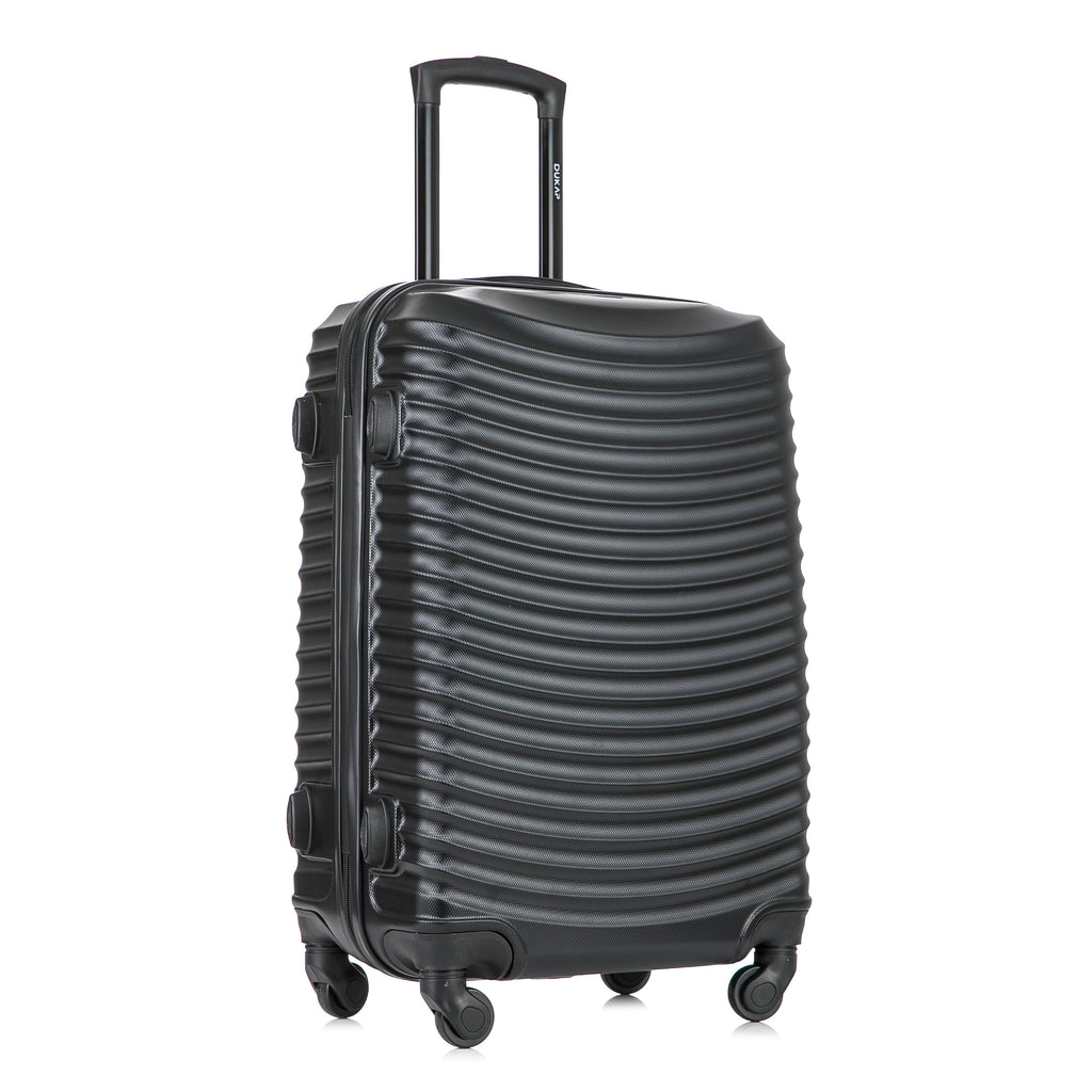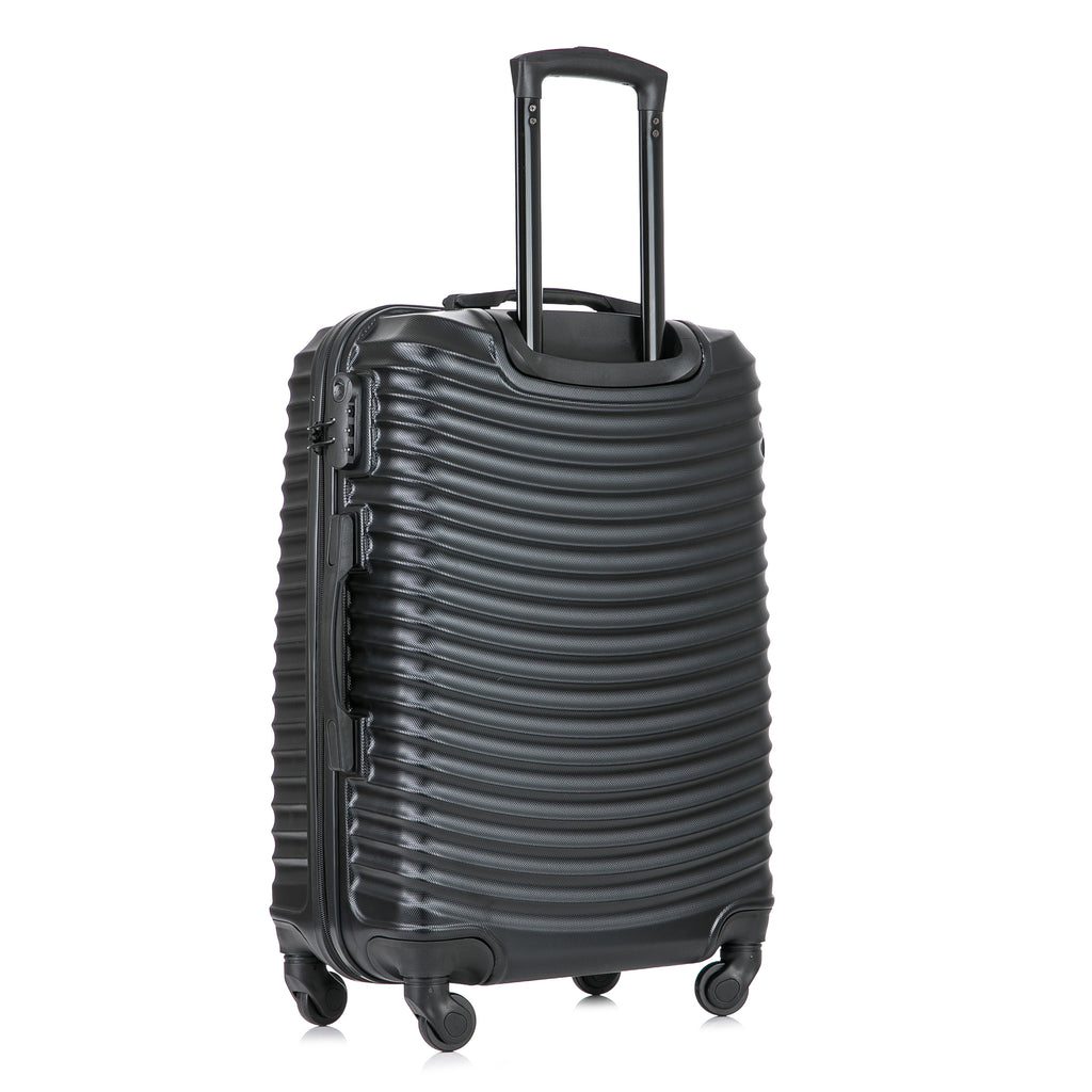 Maletas Extra Livianas y Sólidas de Diseño Contemporáneo y Funcional. Tienen Cuatro Ruedas de diseño Aeronáutico, Multi- Direccionales de 360 Grados y Silenciosas, Para poder mover la maleta sin ningún esfuerzo. Traen Cerraduras Incorporadas de Combinación de tres Dígitos. Asa Metálica Superior Retráctil para Sistema Autoportable, con botón de presión y mango ergonómico en Gel. contiene Agarraderas Laterales en material GEL, que permiten levantarlas cómodamente, además tienen Cuatro Cuñas que permiten apoyarlas lateralmente. Fabricadas con ABS (Plástico de Alta Ingeniería) que reducen el riesgo de abolladuras ante los golpes usuales, y terminadas con acabado metalizado.